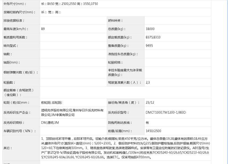 1.整車型號:CSC5182GFLS6,底盤型號:SX1182GP6501、軸距4700、六缸玉柴245馬力、8JS95TE-C(帶同步器及原廠取力器)、車架250/6+4雙層、前橋5T、后橋10T、油箱200L鋁、輪胎10.00R20/18PR翼6半高頂/2220(氣囊座椅、電動車窗、自動恒溫空調(diào)、中控鎖、多功能方向盤、遮陽罩、10寸多媒體屏+倒車影像、四點全浮懸置、7寸彩色液晶屏組合儀表、發(fā)光標(biāo)徽)。罐體采用武鋼Q235-B 碳鋼筒體4MM,封頭5MM,配備蕪湖福達(dá)7.0空壓機(jī),內(nèi)部流化床氣袋式構(gòu)造,兩倉兩蓋,壓力表,轉(zhuǎn)速表,泄壓閥,二次送風(fēng),6米卸灰管。公告容積:18.46立方米,實際容積約:20方。油漆顏色:白/藍(lán)。